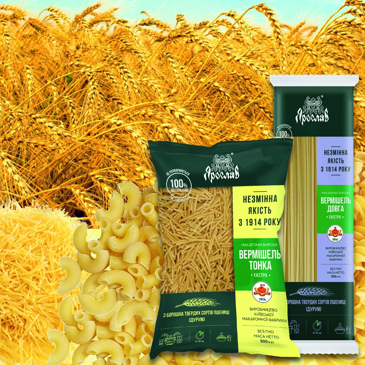 Макарони власного виробництва, від відомої всім Київської макаронної фабрики, бо КМФ це "Ярослав"